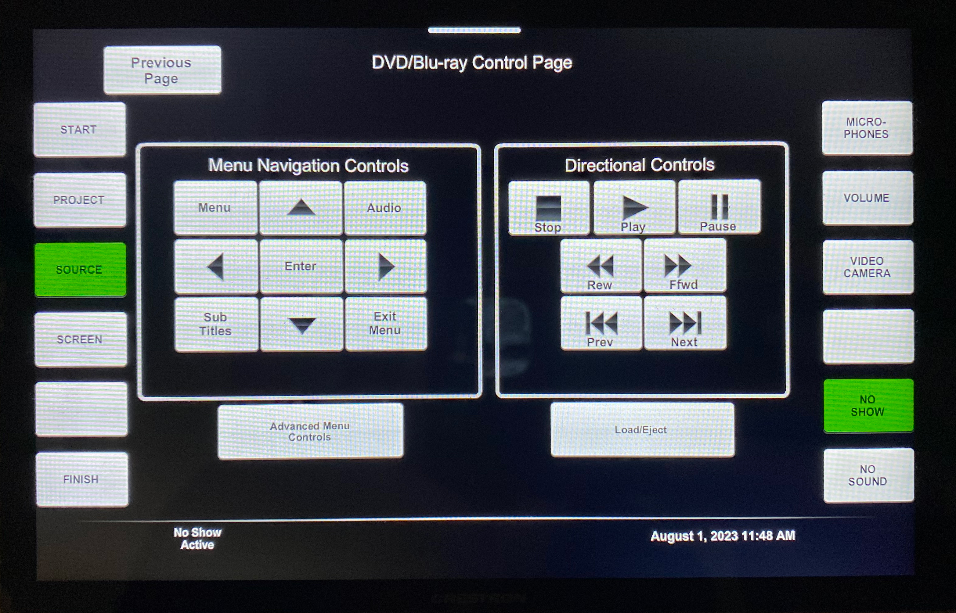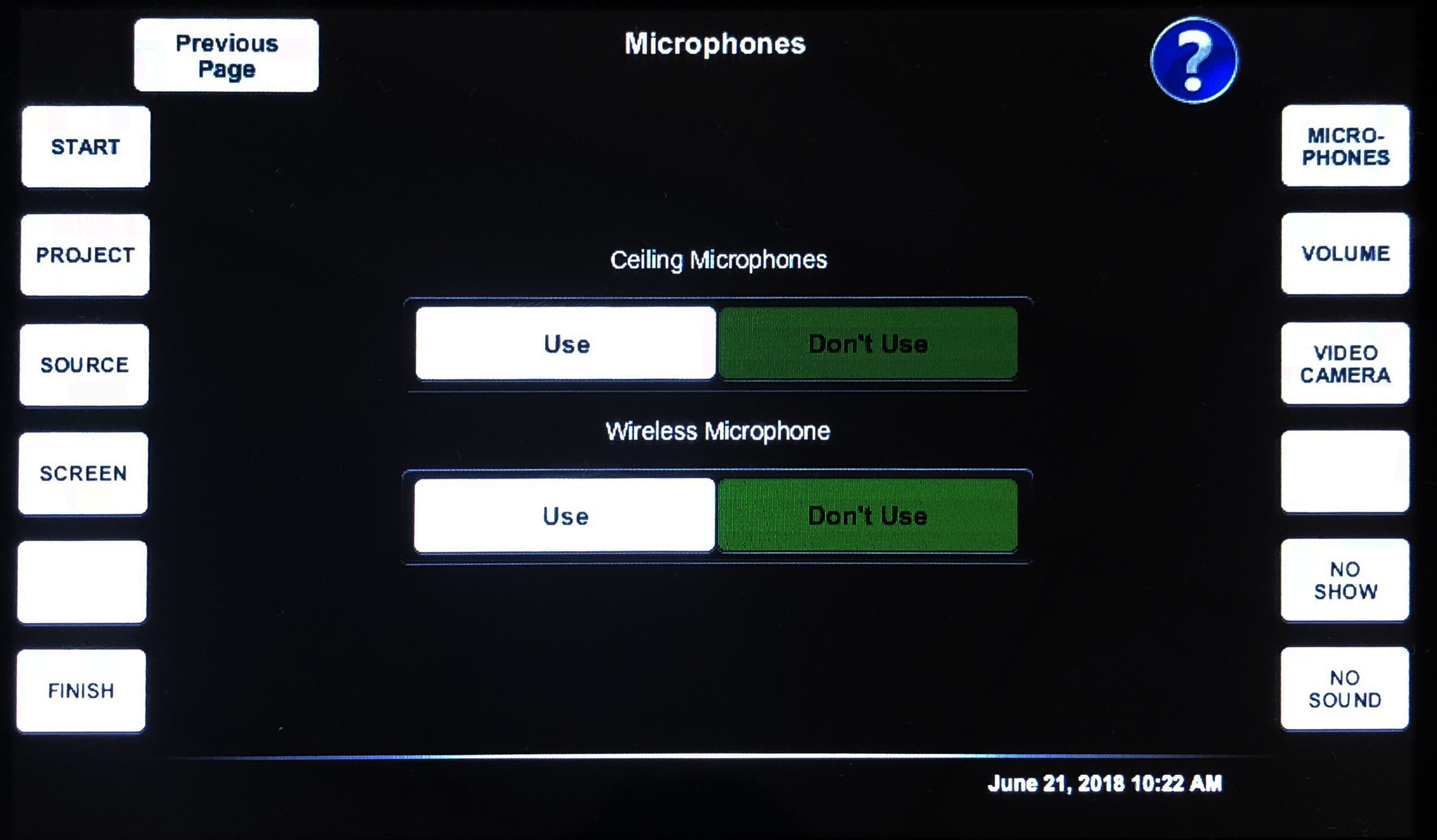 Depending on the room's configuration, the microphone page will look different.